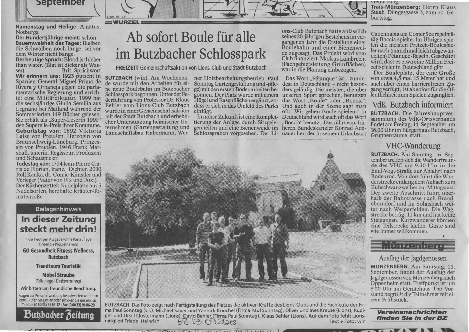 - Ab sofort Boule für alle im Butzbacher Schlosspark- Butzbacher Zeitung vom 13.09.2018 Button